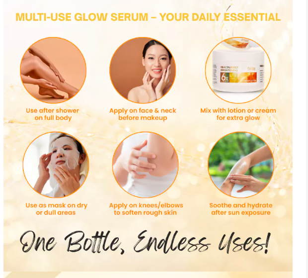 Ashley Shine Niacinamide Pure Serum is crafted for the woman who owns her beauty. This fast-absorbing formula goes deep — reviving dry, tired skin and restoring a soft, elastic, and luminous look. It helps rebuild the skin’s natural barrier, smooth out fine lines, and bring back that youthful radiance — whether it’s for face or body.